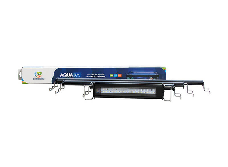 A AquaLED é uma luminária desenvolvida pela Aquaterrário disponível em vários tamanhos, ideal para todo tipo e tamanho de aquário, desde as menores Bateiras aos maiores aquários marinhos, sendo compatível com aquários de 20cm à 1m de largura.